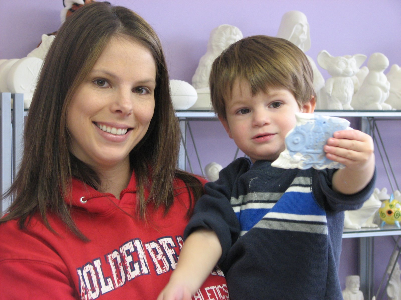 We headed to Wink Pottery to paint some Christmas gifts this past Thursday morning. Several friends met us there. I totally love this place- it is so fun and they have a kid friendly play area where the kids can go when they have "had enough" of painting!